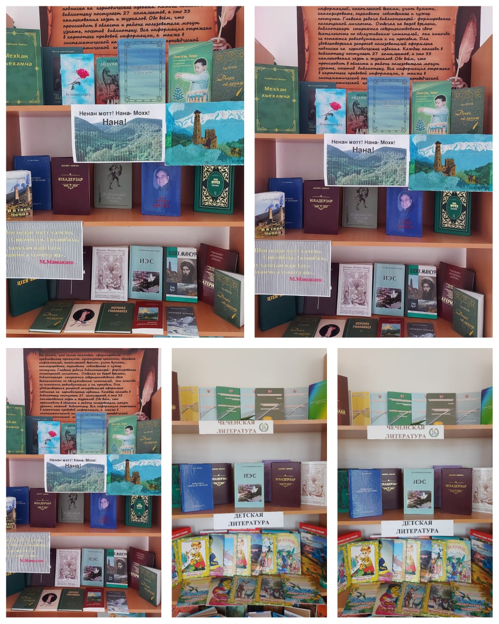 В МБОУ"Коррекционная школа"г.Грозный прошла библиотечная выставка приуроченная, Дню чеченского языка "Ненан мотт! Нана мохк!" Выставку посетили учащиеся, родители и учителя школы.
