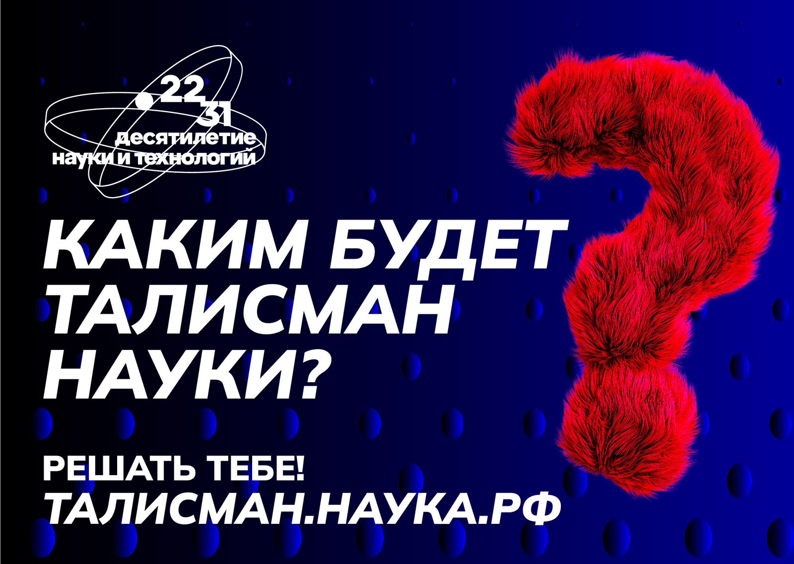 19.07.2023В России стартовал всероссийский конкурс на определение Талисмана Десятилетия. Принять участие в конкурсе может любой житель страны.Для этого необходимо до 31 июля загрузить свой вариант Талисмана на страницу конкурса талисман.наука.рф. Выполнить изображение можно в любой технике и жанре.Отбор работ пройдёт в несколько этапов.С 1 по 31 августа волонтеры и эксперты определят шорт-лист из 40 работ. С 6 по 15 сентября отобранные Талисманы будут доступны для открытого онлайн-голосования на странице конкурса талисман.наука.рф.Пять лучших работ будут представлены членам Координационного комитета Десятилетия науки и технологий для голосования за талисман-победитель.Финалисты конкурса получат дипломы и сувениры, победитель конкурса сможет посетить Конгресс молодых ученых, а его работа станет официальным Талисманом Десятилетия науки и технологий в России.Более подробная информация о конкурсе на странице талисман.наука.рф и на официальном сайте Десятилетии науки и технологий наука.рф.