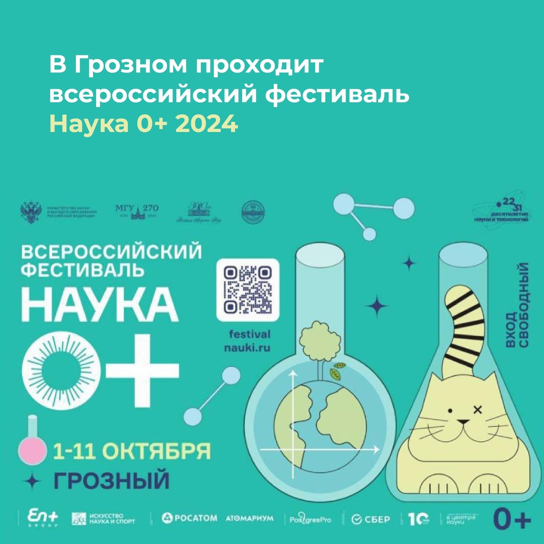 02.10.2024В Грозном на базе ЧГУ им. А.А. Кадырова с 1 по 11 октября проходят научные мероприятия в рамках всероссийского фестиваля Наука 0+ 2024.
