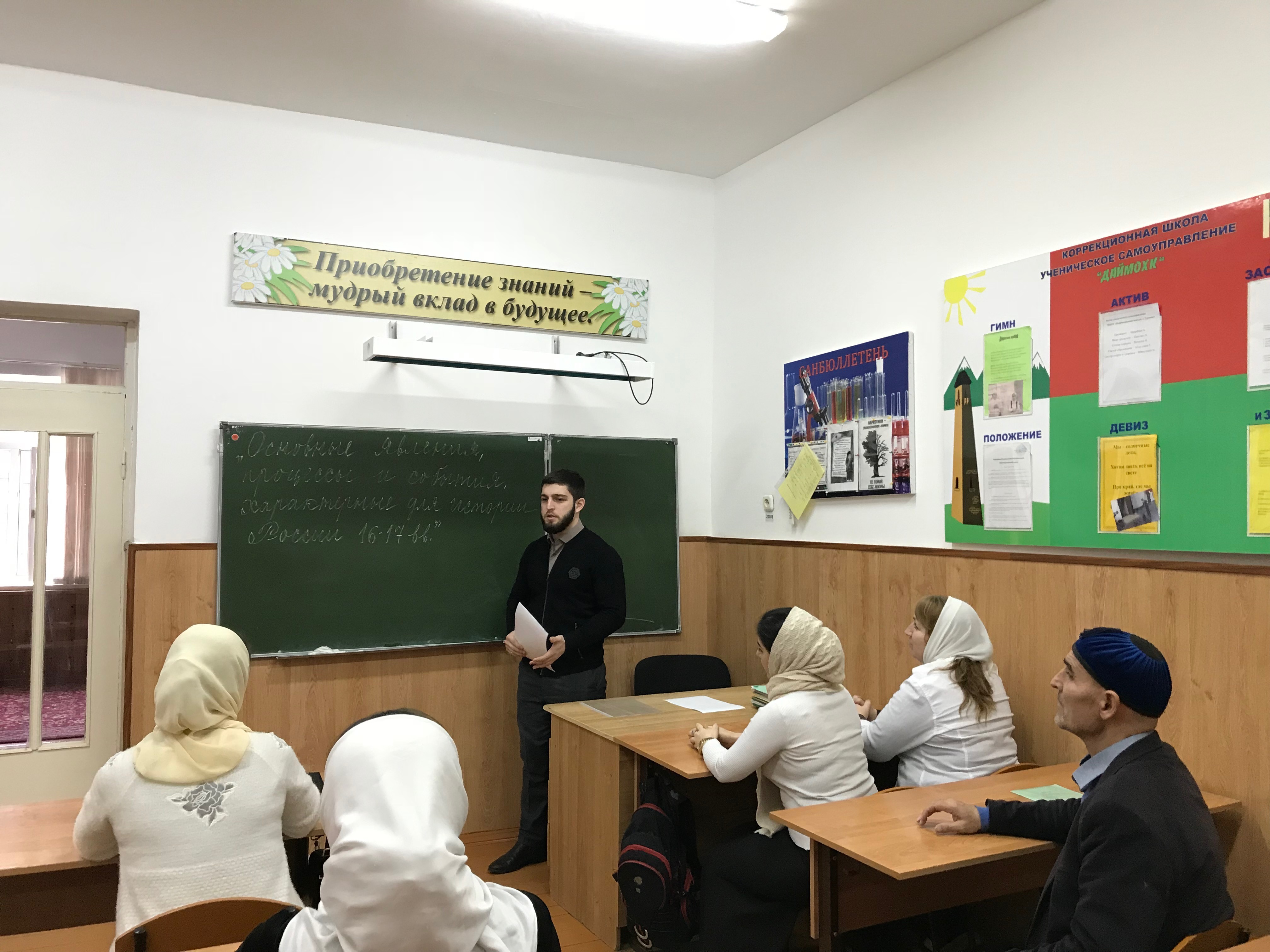 06.02.201805.02.2018г.в МБОУ «Коррекционная школа» г.Грозного учитель истории Яскиев З.С. провел семинарское занятие на тему «Основные явления и процессы, события, характерные для истории России XVI-XVII вв»