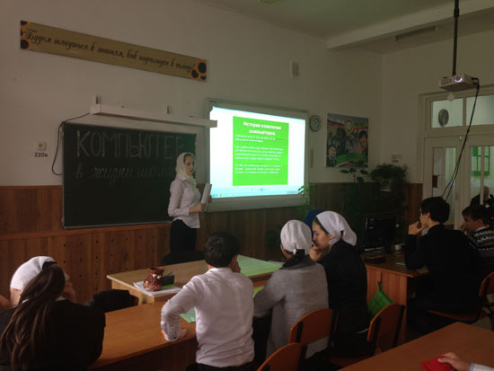 28.10.14 г. учитель информатики провела урок- интернет с учащимися 8-9 классов на тему «Компьютер в жизни школьника». Цель: Привлечь внимание ребенка к сбережению здоровья при работе за компьютером. Изучение факторов, которые влияют на здоровье. Изучение профилактических мер для сбережения здоровья. Изучение функций компьютера в жизни человека. Оборудование: Компьютеры, интерактивная доска, слайды. В начале урока учитель провела беседу с учащимися о роле компьютера в жизни человека. Она рассказала о вредном влиянии компьютера на здоровье детей. При чрезмерном увлечении компьютером могут возникнуть проблемы со здоровьем, а именно: проблемы, связанные с электромагнитным излучением; проблемы зрения; проблемы, связанные с мышцами и суставами; проблемы бессонницы, стрессов, нервных расстройств; проблемы органов дыхания. О рациональном использовании времени при работе с компьютером. Учащиеся в течении урока принимали активное участие в работе, проявляли интерес к теме урока, задавали вопросы и на некоторые сами и отвечали.