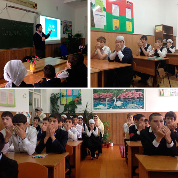 День Ашура 20.10.2015 г. педагог –организатор по ДНВ Абаев В.Р., с учащимися 2-9 классов провел беседу о величии и значимости поста в День Ашура, истории и особенности праздника.Учащиеся по желанию читали суры и аяты Корана. Лучшим чтецам директор школы Товзаева З.Э. вручила памятные подарки (мусульманские чётки и фломастеры)